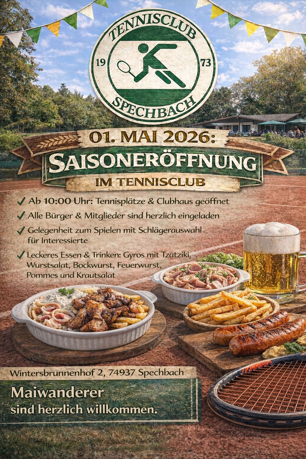 Die Tennisplätze und das Clubhaus sind ab 10:00 Uhr geöffnet. Wir freuen uns auf eine rege Teilnahme!
